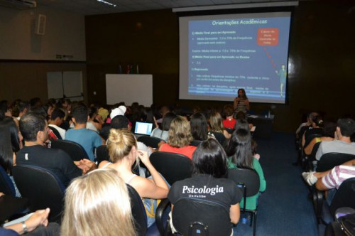 Nesta noite, os alunos do curso de Psicologia participaram do 1º Ciclo de capacitação acadêmica, que tem como finalidade orientar e conduzir os alunos do Curso de Psicologia às condutas e atitudes acadêmicas, com o intuito de conquistarem a autoconfiança e a segurança frente aos desafios, aos direitos e aos deveres enquanto universitários.