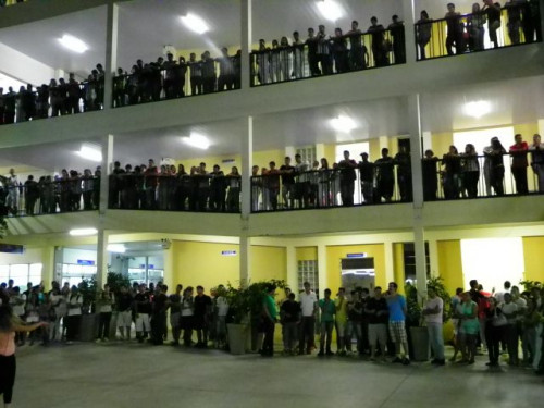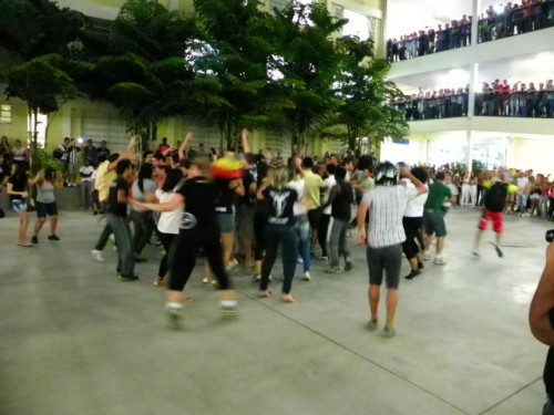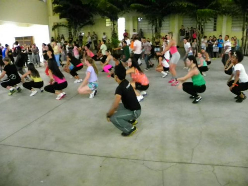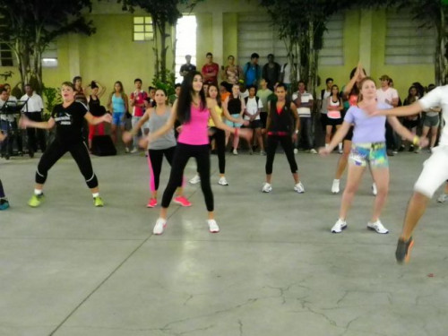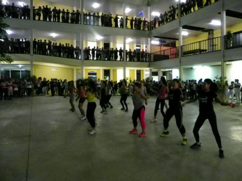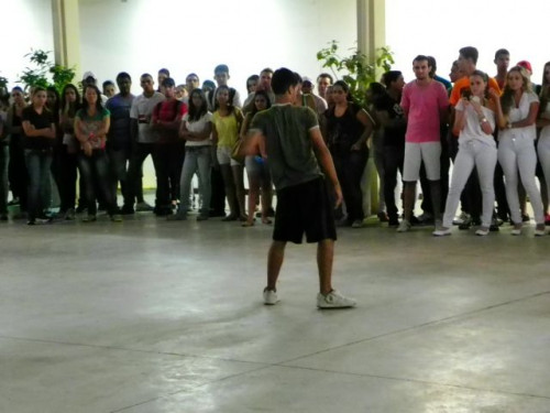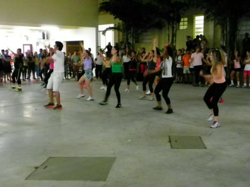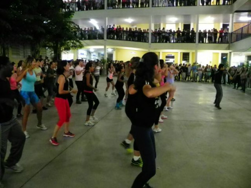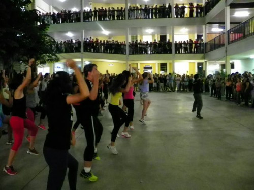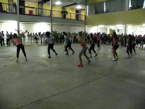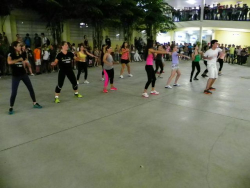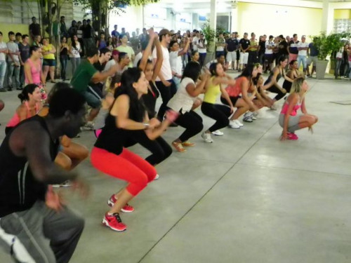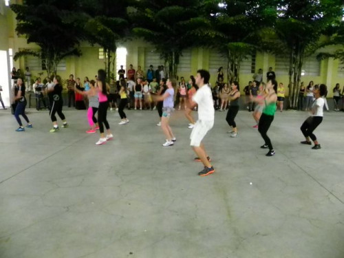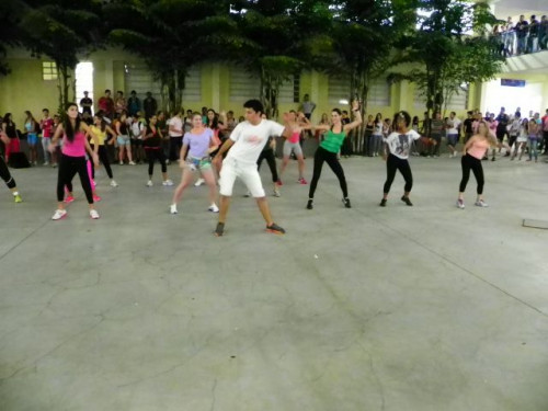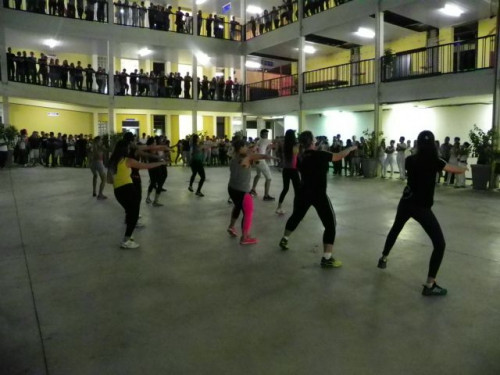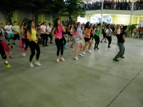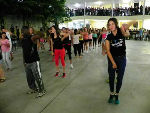 Os alunos dos cursos de Educação Física (Bacharelado/Licenciatura) realizaram apresentação de dança em comemoração ao Dia Mundial da Atividade Física, no pátio do UNIFAFIBE.