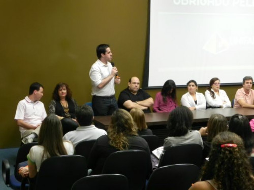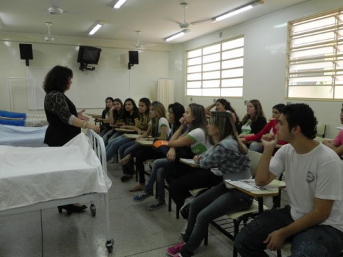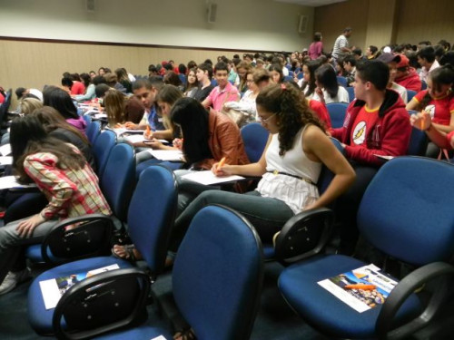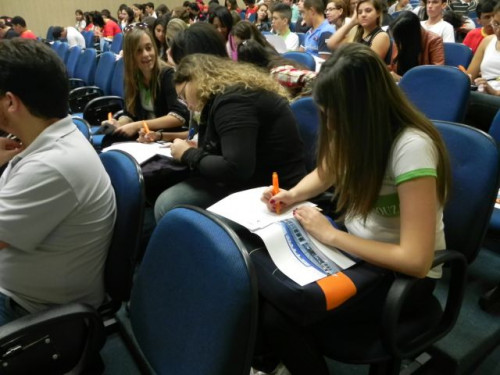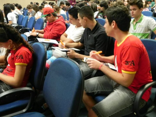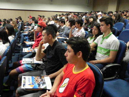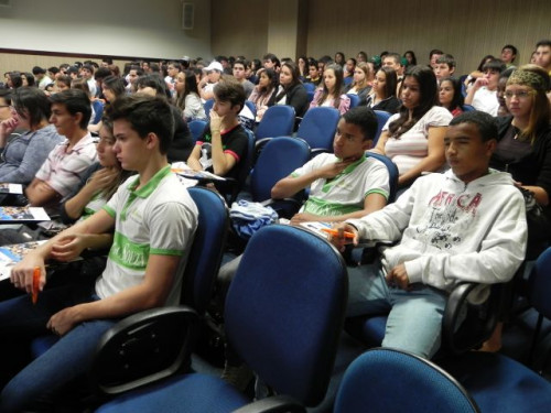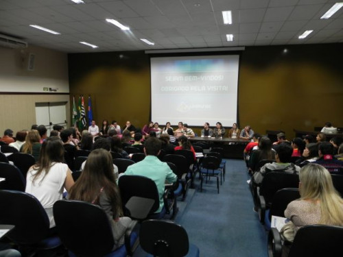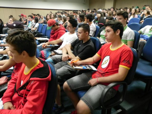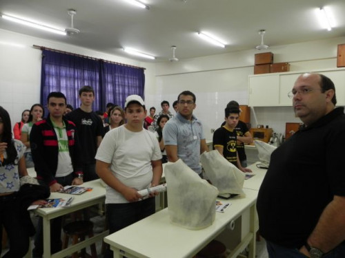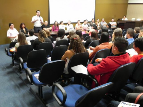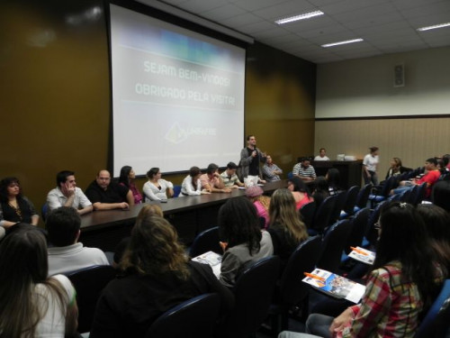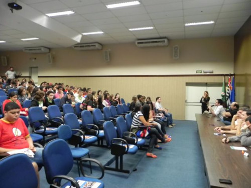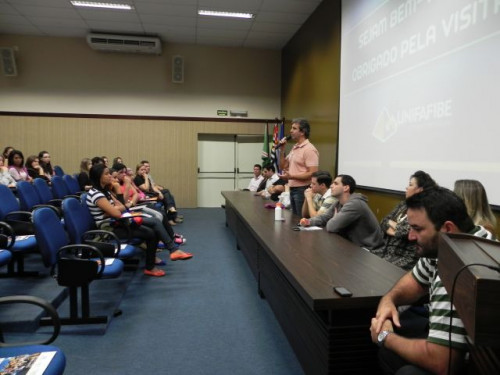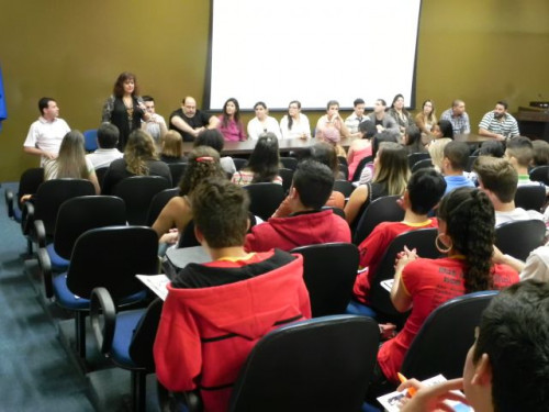 Os alunos do 3º ano das escolas Nena Giannasi Buck, de Monte Azul Paulista, Odulfo de Oliveira Guimarães , de Viradouro, e ETEC de Olímpia participaram de uma Mesa Redonda realizada pelos coordenadores dos cursos do UNIFAFIBE.