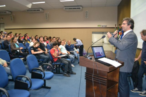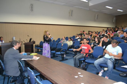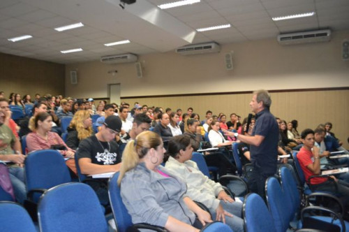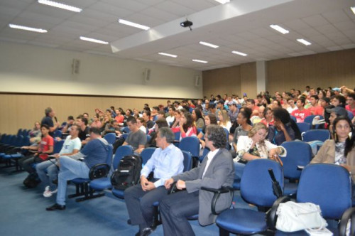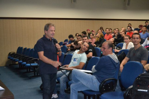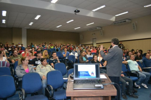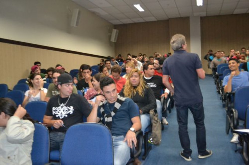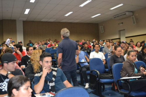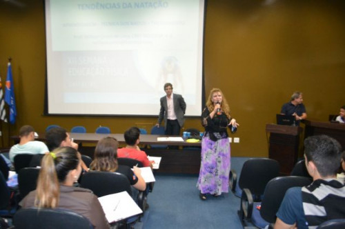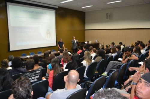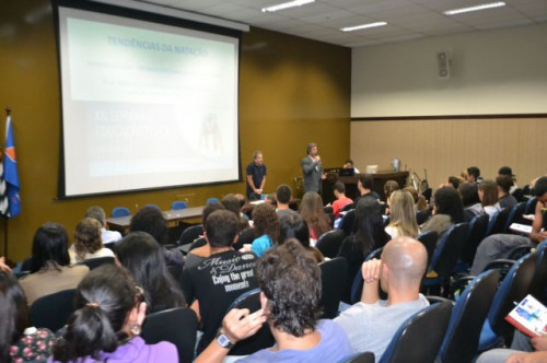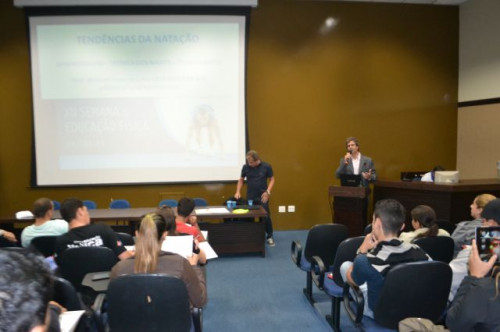 No anfiteatro I do UNIFAFIBE, inicia-se a XII Semana de Educação Física "Atualização no Exercício Profissional", com uma palestra intitulada: TENDÊNCIAS DA NATAÇÃO: APRENDIZAGEM, TÉCNICA DOS NADOS E TREINAMENTO, ministrada pelo Prof. William Urizzi de Lima.