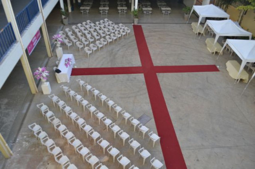 Continuando com a programação da Semana de Acolhimento, o curso de Estética e Cosmética realizou uma atividade no pátio interno do UNIFAFIBE, chamada "Existe alguém mais bela do que eu?".