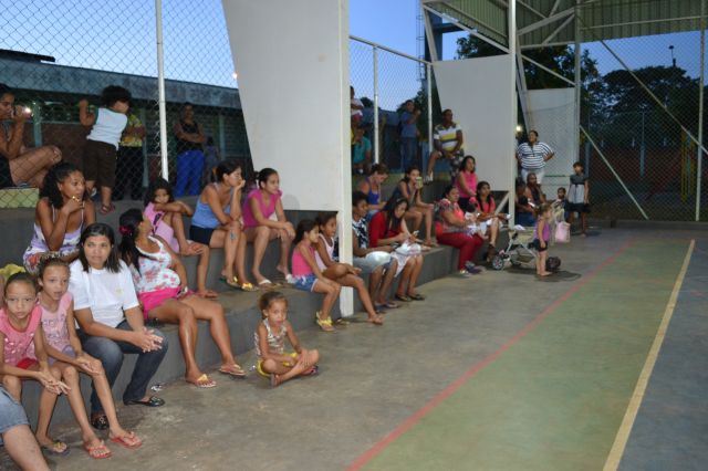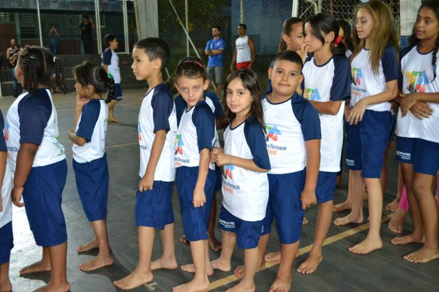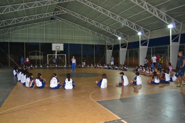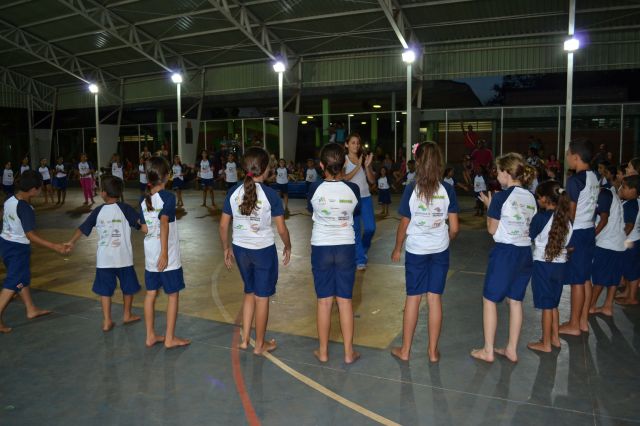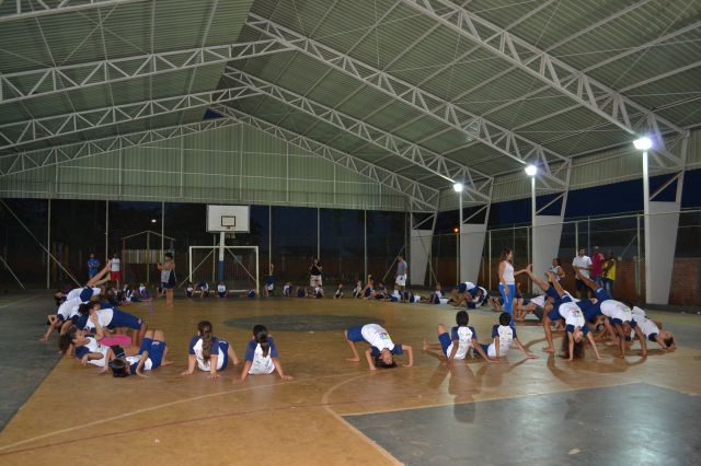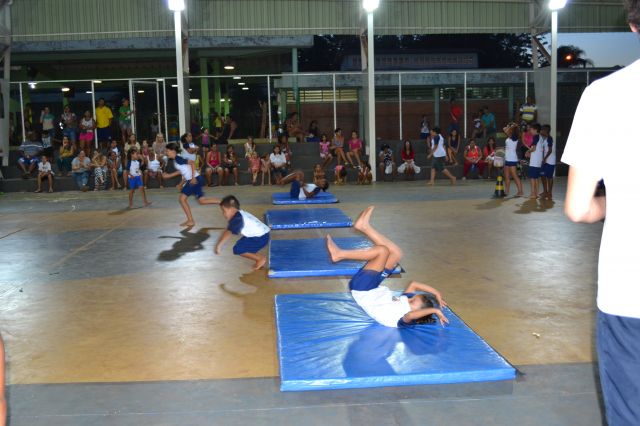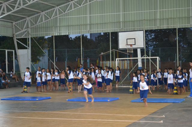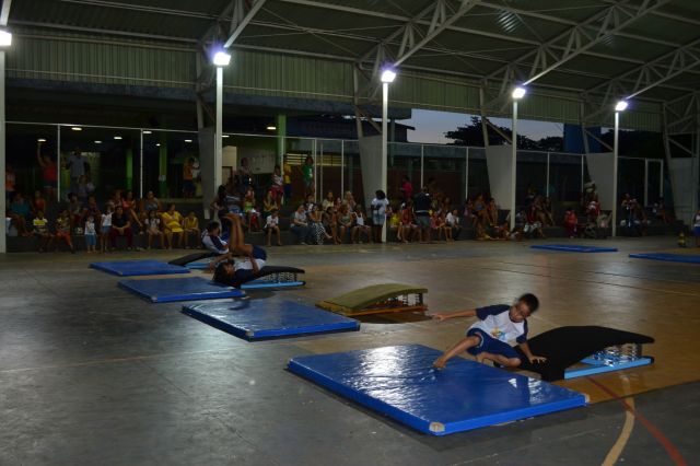 Os alunos participantes do Projeto Ginástica, Arte e Formação realizaram uma apresentação especial para pais e familiares que se reuniram na quadra da escola João Pereira Pinho.