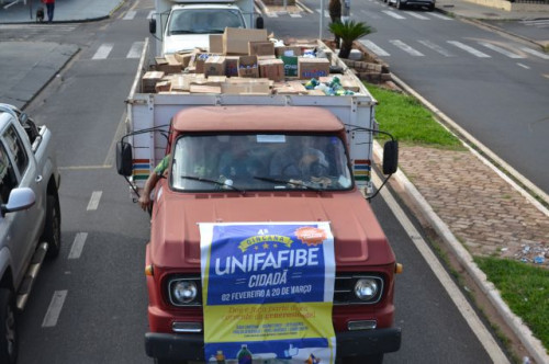 Nesta manhã, o Centro Universitário UNIFAFIBE, realizou a entrega das doações da 4º Gincana Cidadã ao Hopital Municipal Júlia Pinto Caldeira. Foram cinco caminhões lotados de produtos arrecadados pelos alunos do UNIFAFIBE, população em geral, empresas e igrejas.