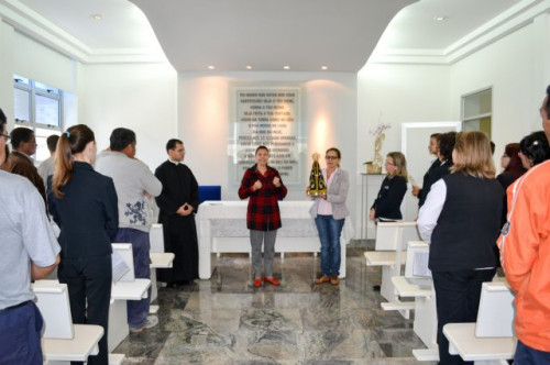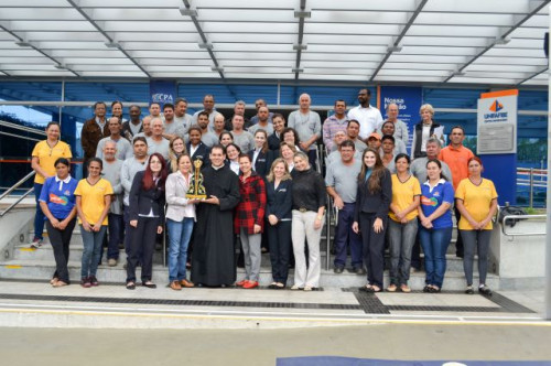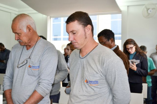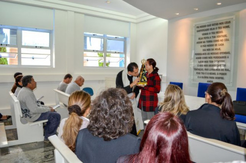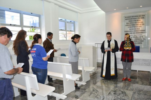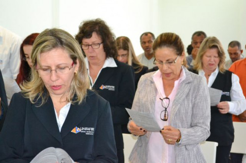 Direção e funcionários participaram da missa realizada na capela do UNIFAFIBE com a visita especial da Imagem Peregrina de Nossa Senhora Aparecida, bem como pediram suas bençãos sobre todos.