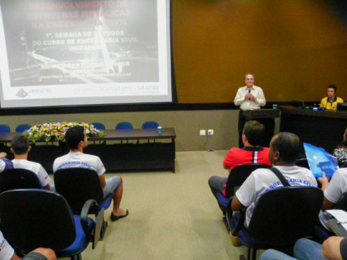 A I Semana de Estudos do Curso de Engenharia Civil "Inovações Tecnológicas na Engenharia Civil", trouxe mais duas palestras "Estruturas metálicas", ministrada pelo Prof. Dr. Renato Bertolino e "Construção enxuta", proferida pelo Eng. Leandro Nunes Ruella.