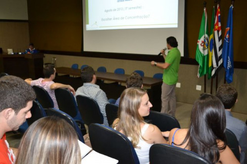 Os alunos do curso de Engenharia Civil participaram da palestra "Reciclagem de resíduos na construção civil", ministrada por José Aldo Dos Santos, da empresa ECOLEED.