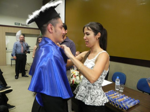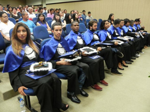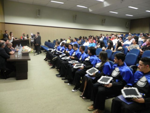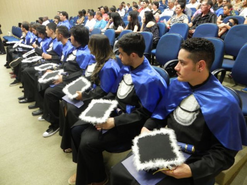 A cerimônia de formatura da 4ª Turma de Design Gráfico aconteceu no Anfiteatro I do UNIFAFIBE, reunindo familiares e amigos dos alunos.