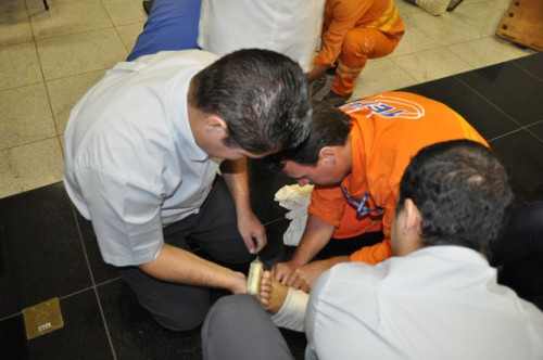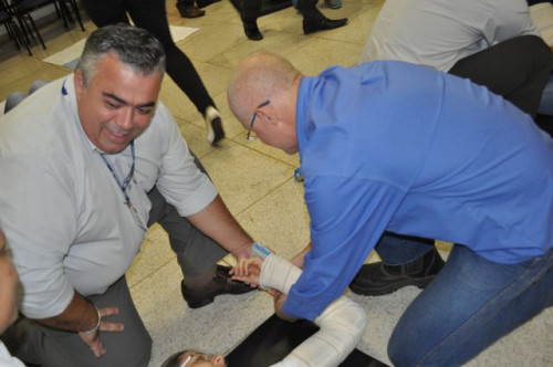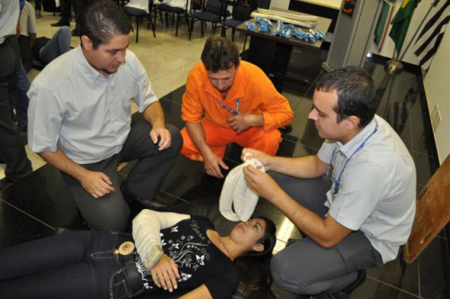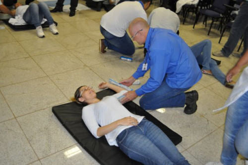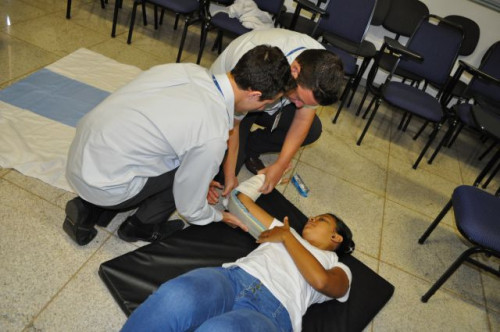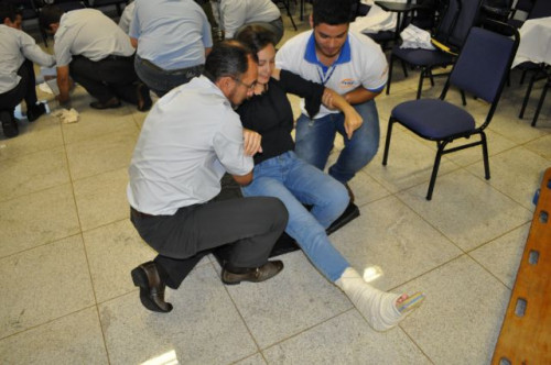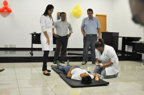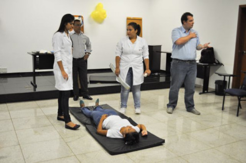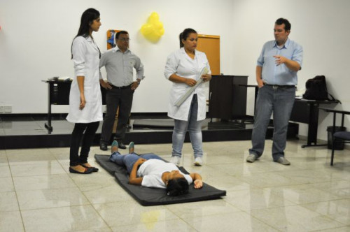 Alunos do curso de Fisioterapia realizam treinamento sobre primeiros socorros para funcionários da Concessionária de Rodovias TEBE.