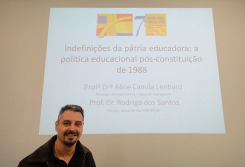 Apresentação do artigo "Indefinições da pátria educadora: a política educacional pós construção de 1988" feita pelos professores Dr. Rodrigo dos Santos (UNIFAFIBE) e Drª. Aline Camila Lenharo (Unesp Araraquara)
