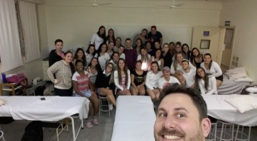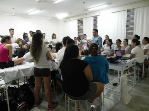 Egresso ministra aula no Curso de Fisioterapia