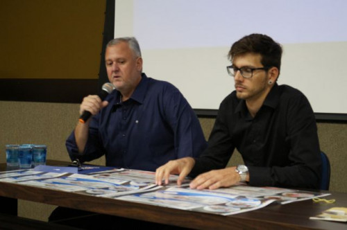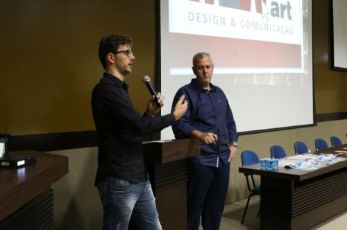Iniciou-se no dia 14/9 a VI Semana de Estudos e I Encontro de Egressos do curso de Design Gráfico do UNIFAFIBE. O evento aconteceu no Anfiteatro II do Centro Universitário e contou com a presençao do Pró-Reitor Acadêmico, Prof. Dr. Hélio José dos Santos Souza, com a Coordenadora do Curso de Design Gráfico, Prof.ª Me. Bethânya Graick Carízio, demais professores e alunos do curso. O destaque da noite ficou por conta dos Egressos da 1ª e 2ª Turma de Design: Márcio José Doimo Munhoz, Felipe Archangelo, Guilherme Lopes Soares, Douglas da Silva dos Santos e Jean Salerno, que puderam compartilhar um pouco de suas experiências profissionais após a conclusão do curso.