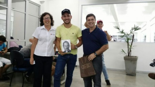 Os ingressantes do Curso de Engenharia Elétrica, acompanhados pelo coordenador de curso, Prof. Me. Paulo Afonso Franzon Manoel, foram recepcionados na Biblioteca do Centro Universitário UNIFAFIBE no dia 08/03 pela bibliotecária Marisa.