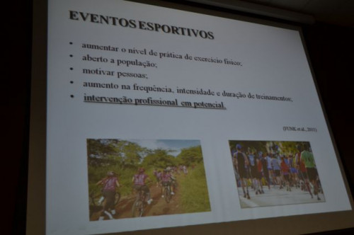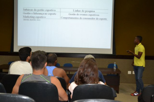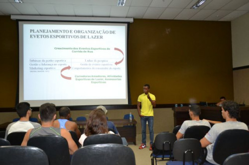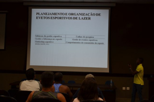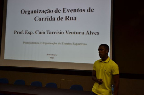Na noite do dia 28, o egresso do curso de Educação Física, Caio Tarciso Ventura Alves, ministrou a palestra intitulada PLANEJAMENTO E ORGANIZAÇÃO DE EVENTOS ESPORTIVOS para os alunos do 3º e 4º ano Bacharel. Caio atualmente é aluno de mestrado na Escola de Educação Física e Esportes da USP - Ribeirão Preto e compartilhou sua experiência profissional e acadêmica com os alunos de nosso curso.