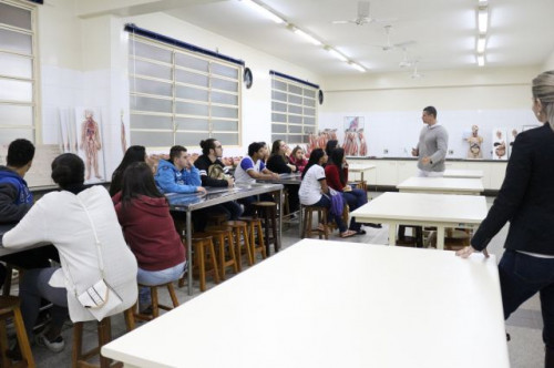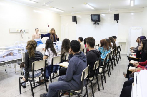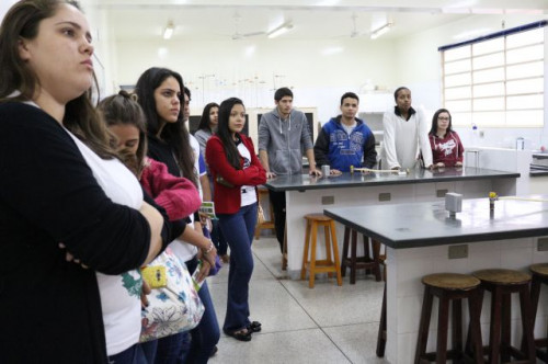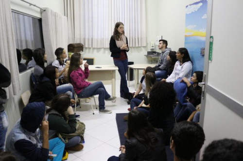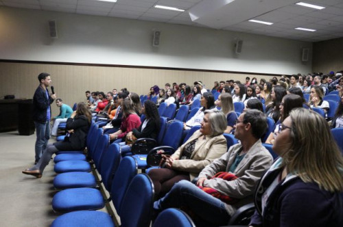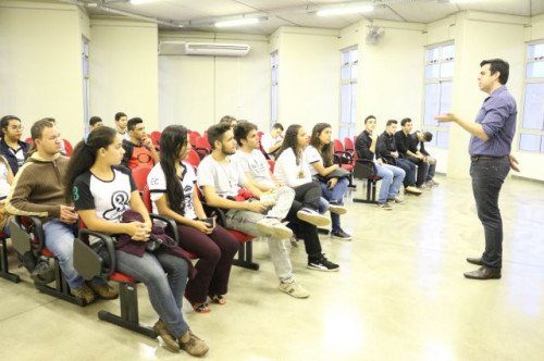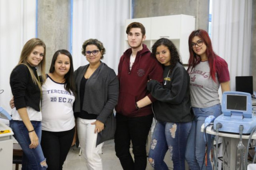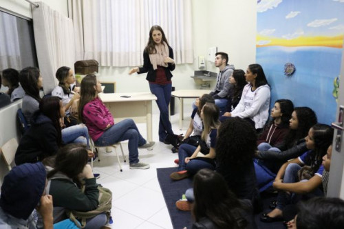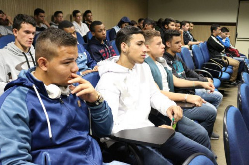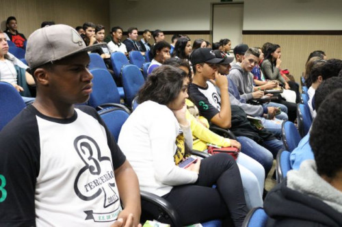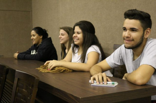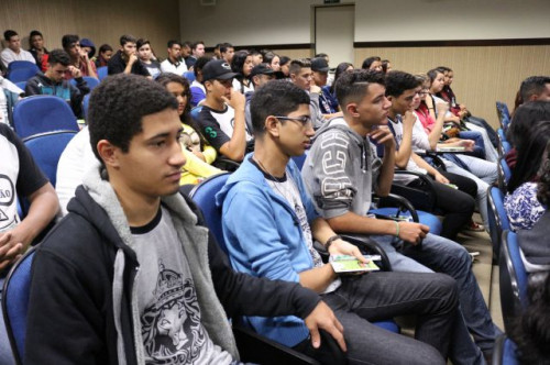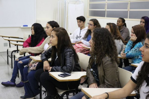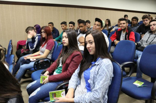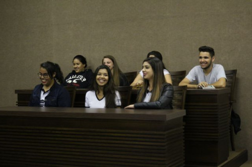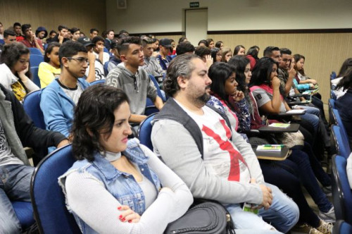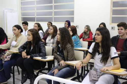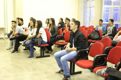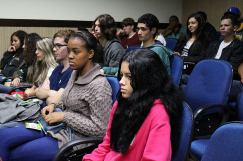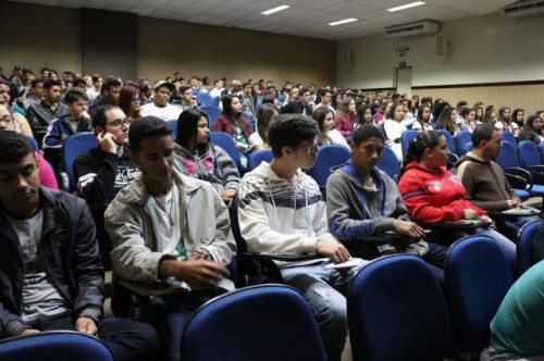 Alunos de ensino médio das cidades de Jaboticabal e Morro Agudo em visita ao Fórum de Profissões do UNIFAFIBE, no dia 18 de agosto de 2017.