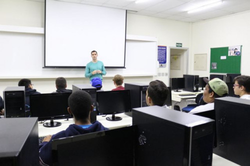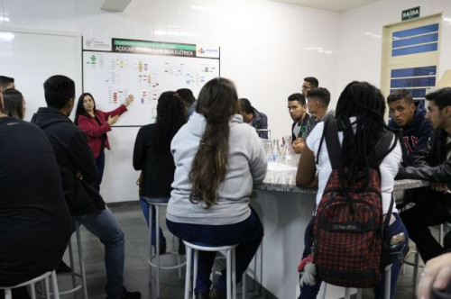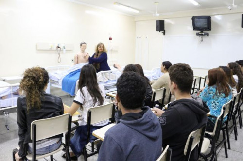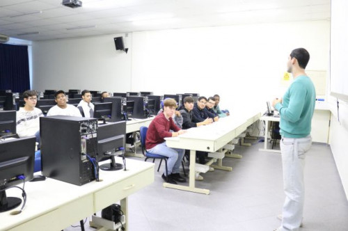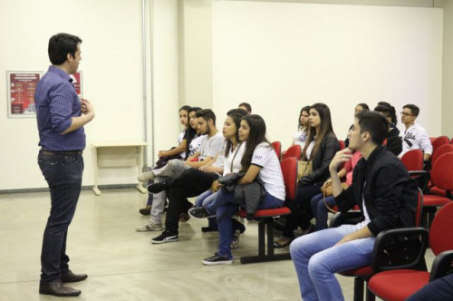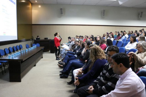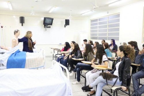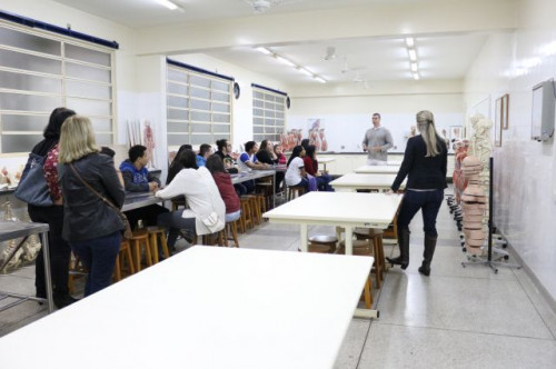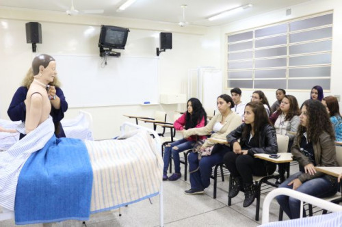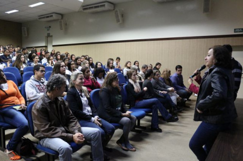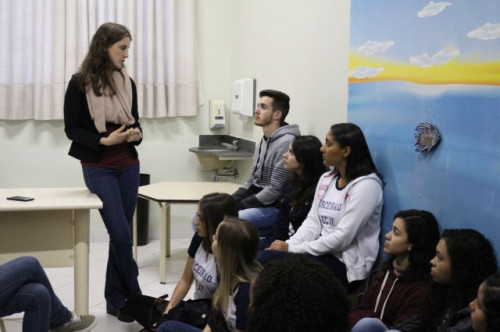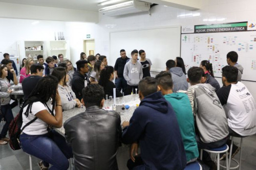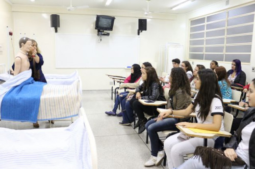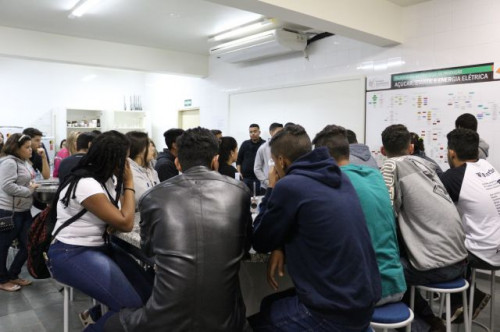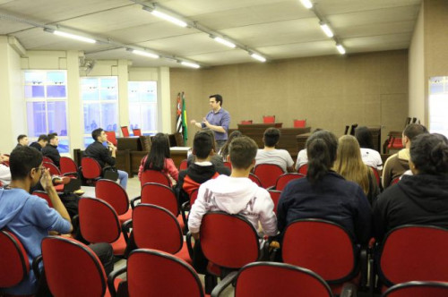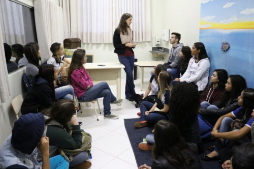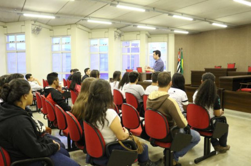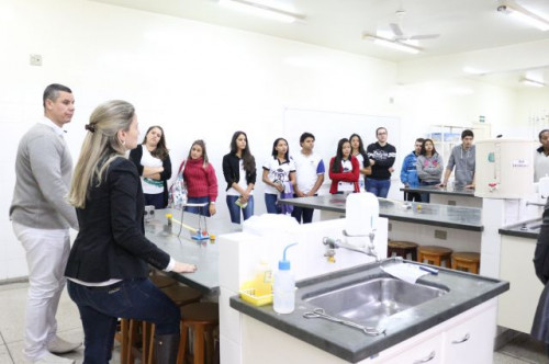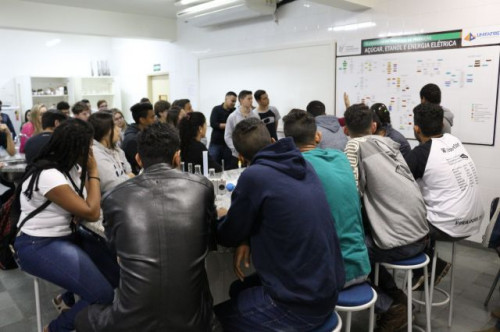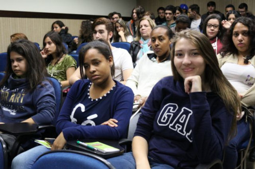Alunos de ensino médio das cidades de Jaboticabal e Morro Agudo em visita ao Fórum de Profissões do UNIFAFIBE, no dia 18 de agosto de 2017.