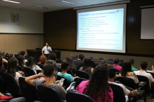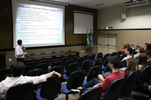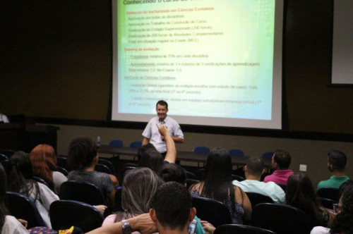 Palestra “Conhecendo o Curso de Ciências Contábeis” promovida no dia 05 de março de 2018, pelo coordenador do curso, aos alunos ingressantes.