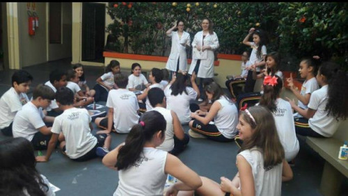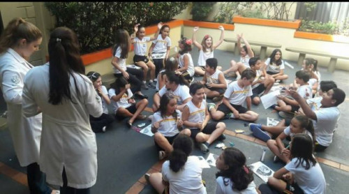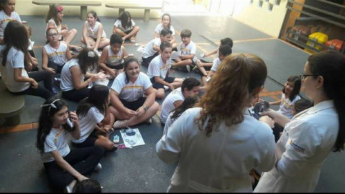 Ação de educação nutricional promovida por alunas do curso de Nutrição do UNIFAFIBE durante a “Semana da Alimentação Saudável” promovida pelo Colégio Convívio, em Bebedouro.