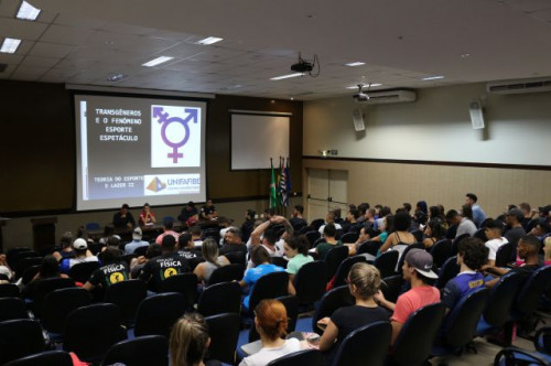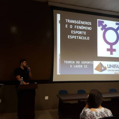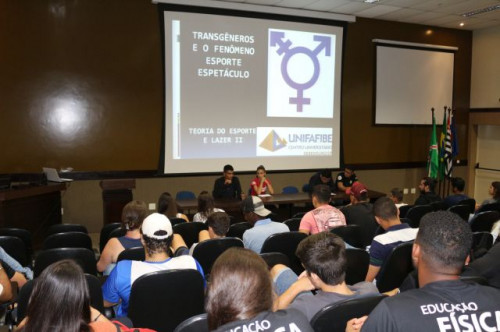 Debate sobre Transgêneros e o fenômeno Esporte Espetáculo promovido pelos alunos do 2º ano do curso de Bacharelado em Educação Física do UNIFAFIBE, no dia 3 de abril de 2018.