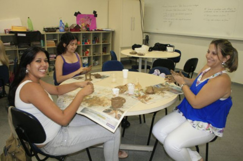 2º ano de Psicologia solta a imaginação com argila em aula especial.
