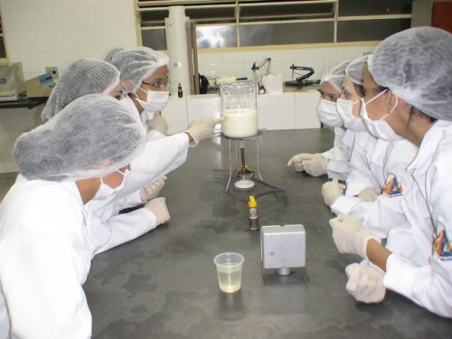 Alunos de Ciências Biológicas aprendem a fazer requeijão em aula prática de Bioquímica.