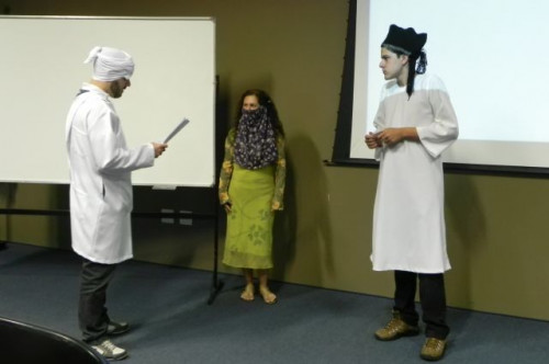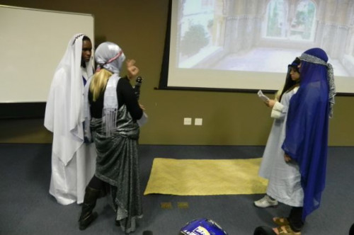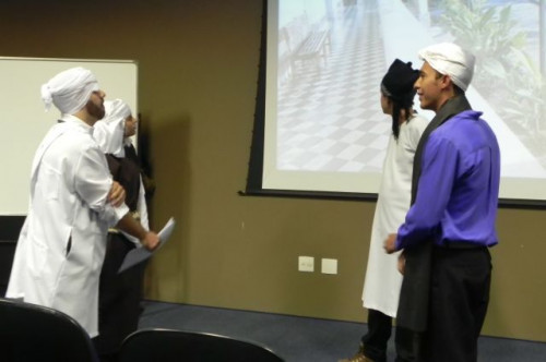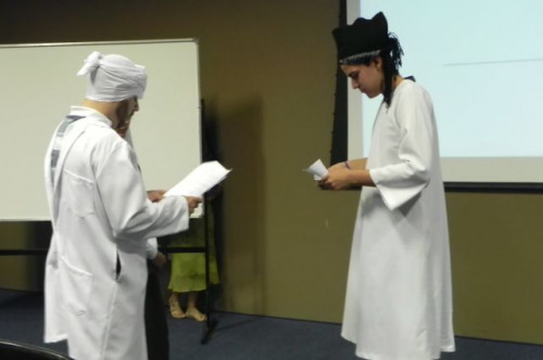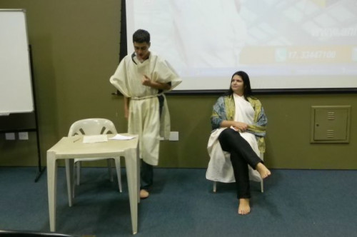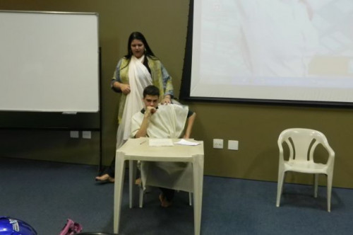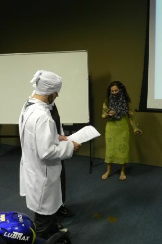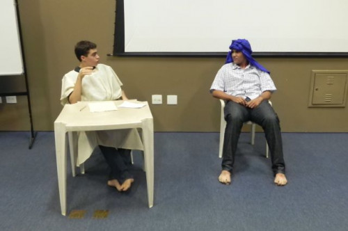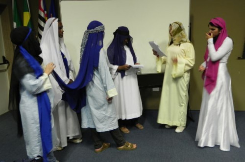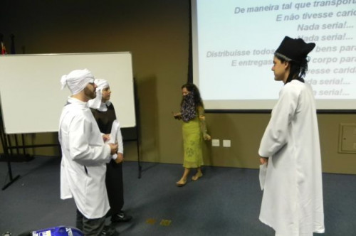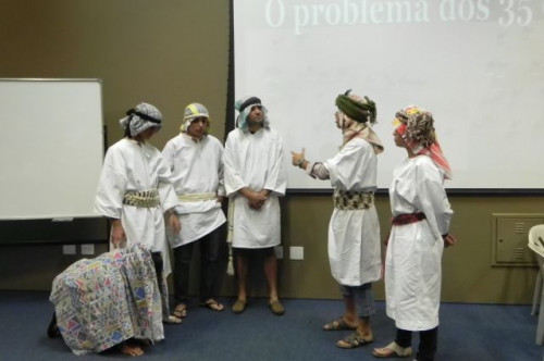 Os alunos do 1º ano de Ciências Contábeis continuam realizando apresentações teatrais baseadas no livro "O Homem que calculava" (autor Malba Tahan).