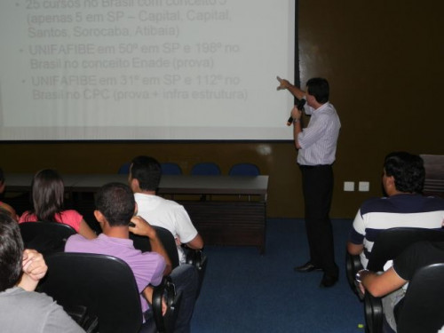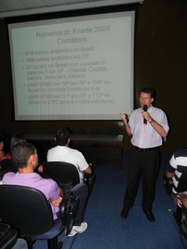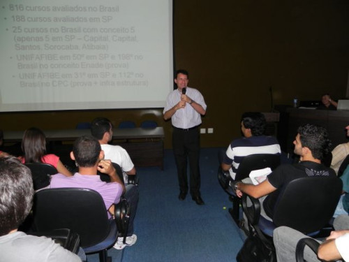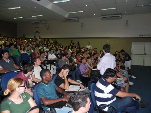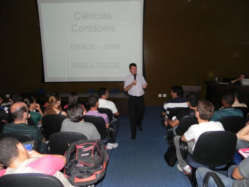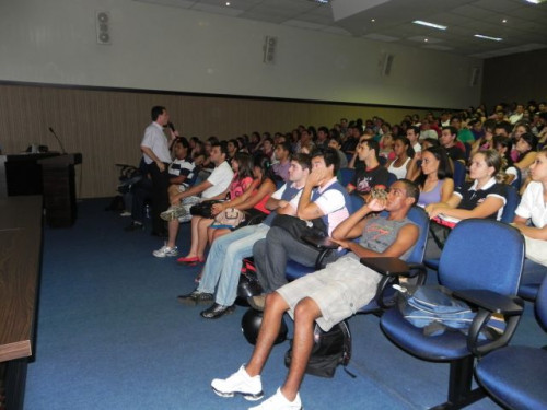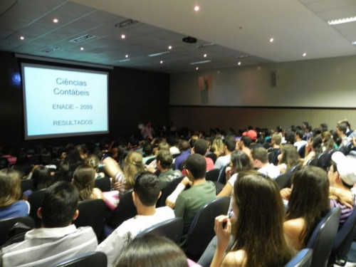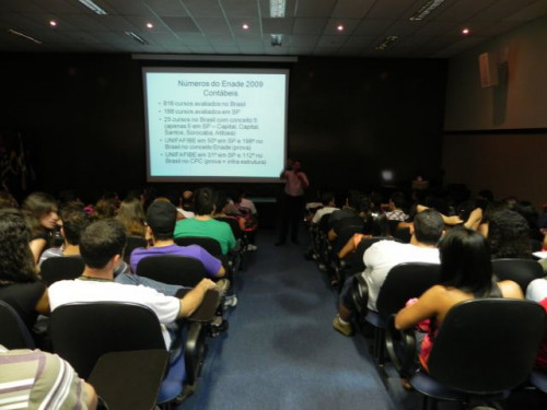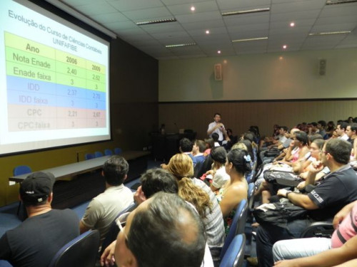 Os alunos do curso de Ciências Contábeis participaram da apresentação do Projeto Interdisciplinar e acolhimento dos ingressantes 2012, realizado no anfiteatro I, sob a coordenação do Prof. Ms. Júlio César Bellingieri.
