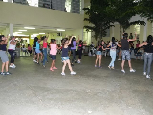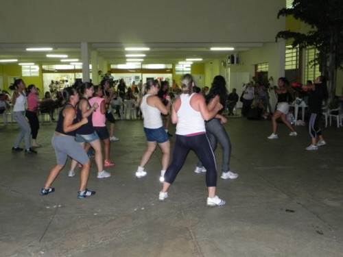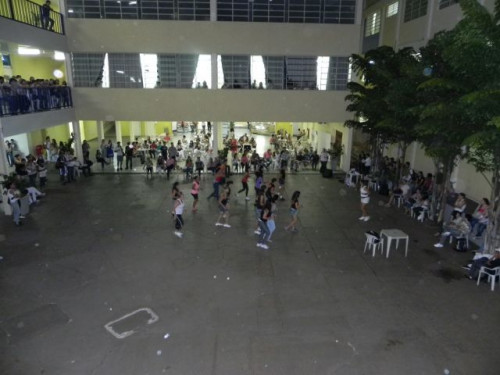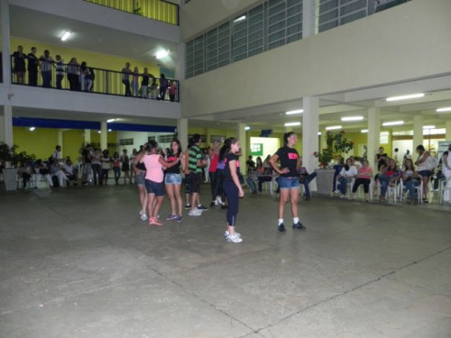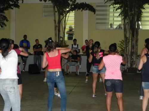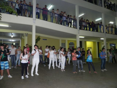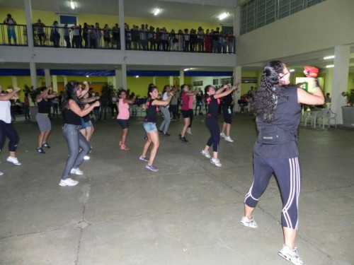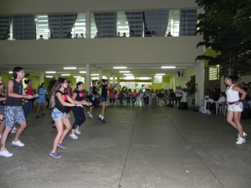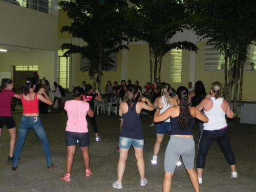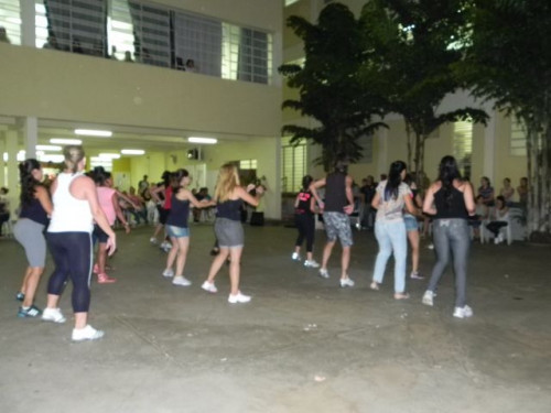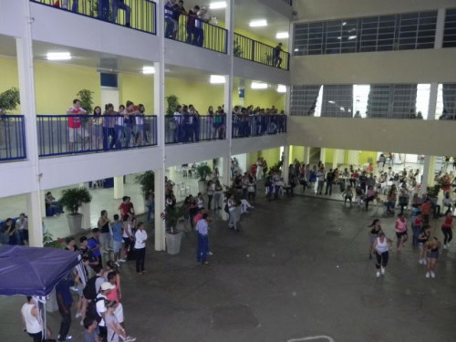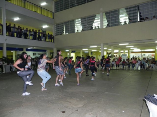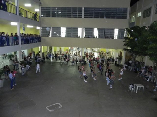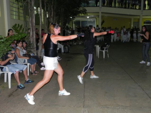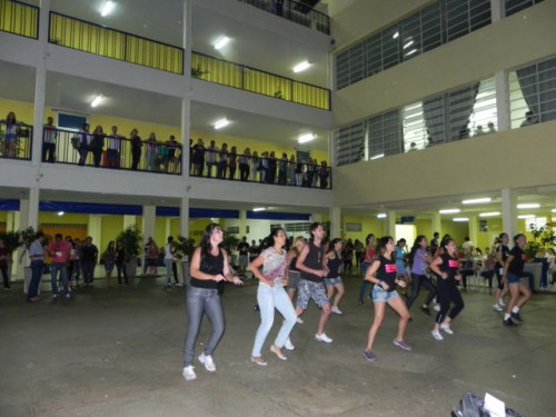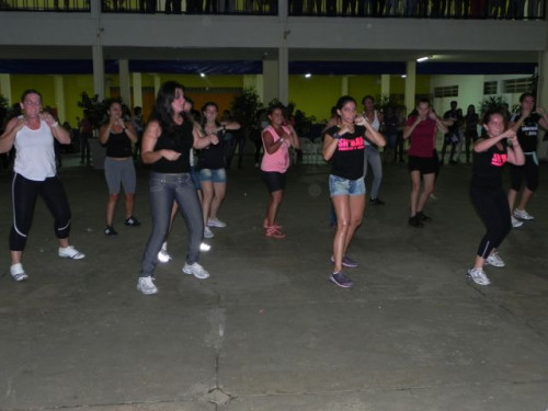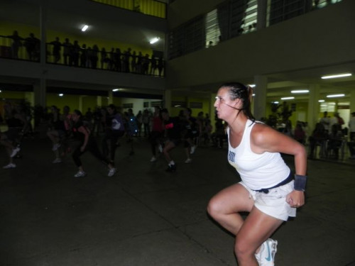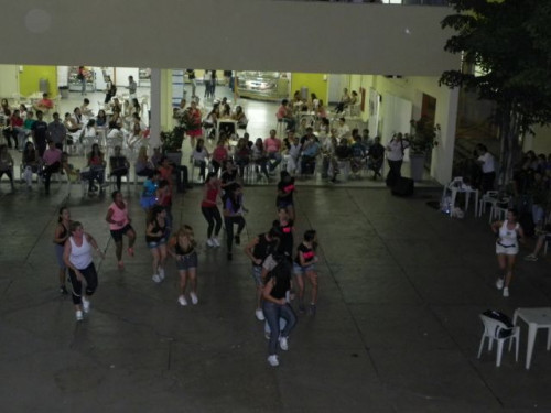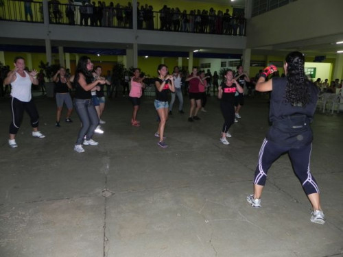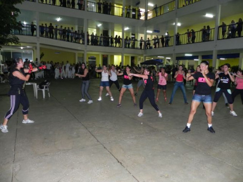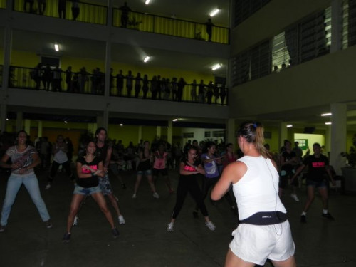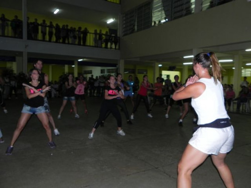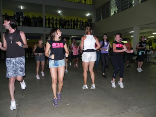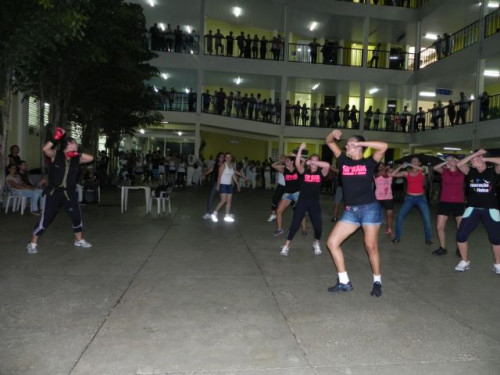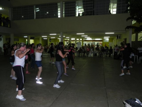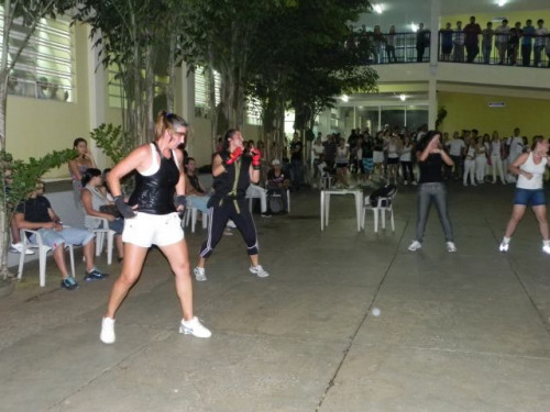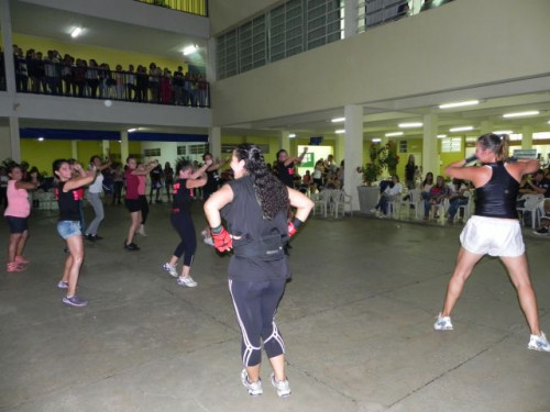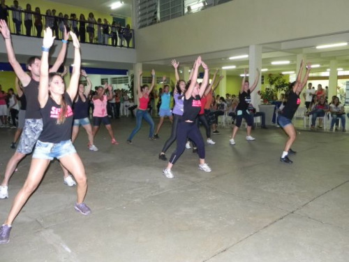 Os alunos do curso de Educação Física realizaram no pátio central do UNIFAFIBE, durante o intervalo das aulas, uma apresentação de Body Mix, que é uma aula composta por diversas modalidades de ginástica.