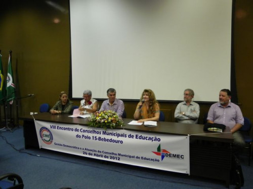 Nesta manhã, o Departamento Municipal de Educação e Cultura (DEMEC),promoveu, em parceria com o UNIFAFIBE, o VIII Encontro de Conselhos Municipais de Educação, do Polo 15 - Bebedouro - SP.