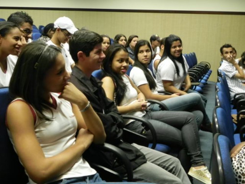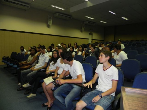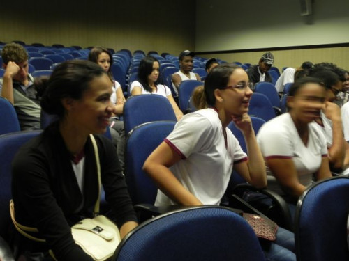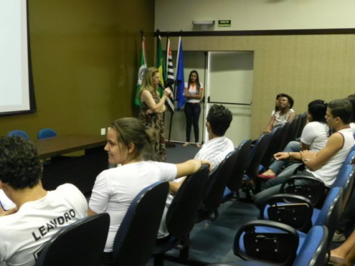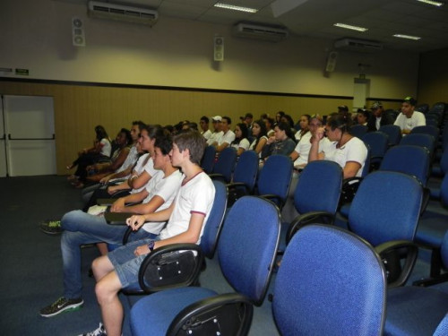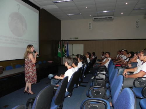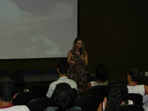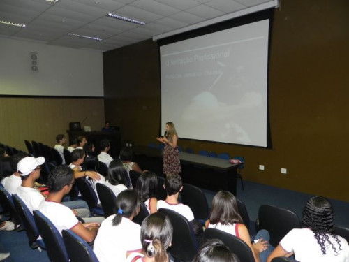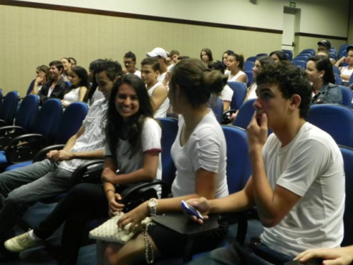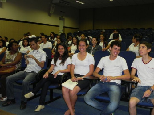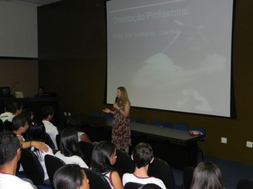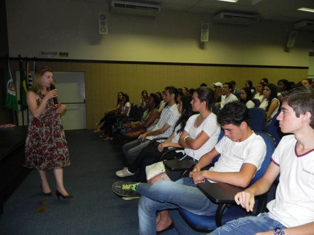 Hoje, os alunos do 3º Ano do Ensino Médio da Escola Prof. Orlando França de Carvalho, acompanhados pela Prof. Mediadora Rosa Maria Rodrigues Ladislau e pelo Prof. de Língua Portuguesa, Gilson Evangelista, participaram da palestra da Profª. Dra. Valéria Aparecida Chechia.