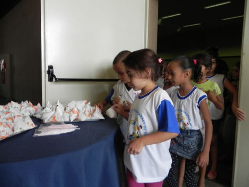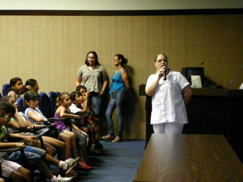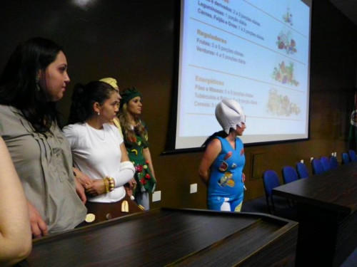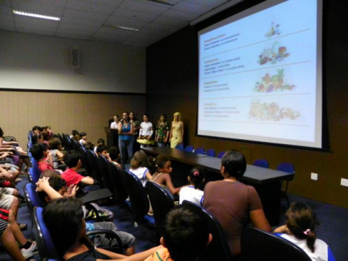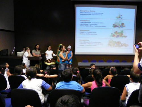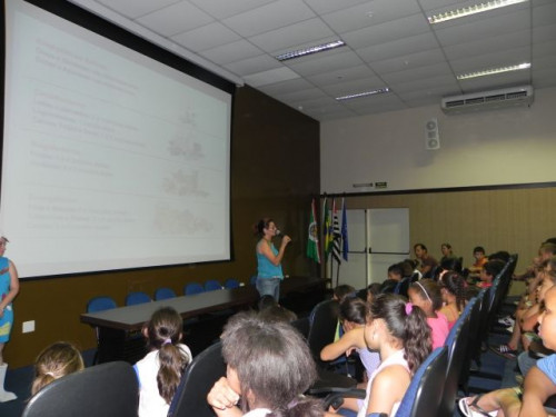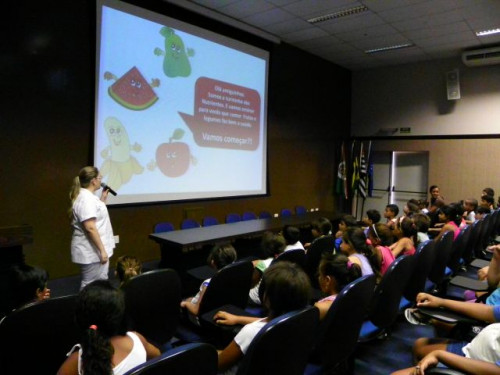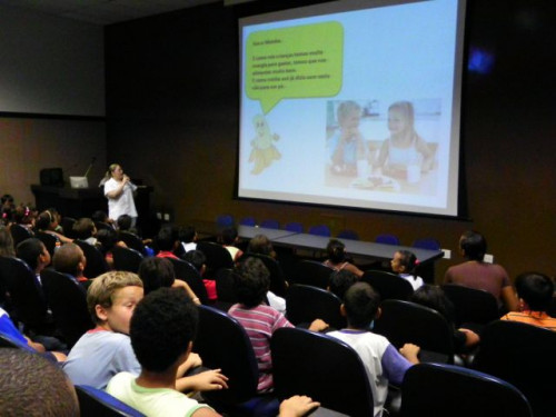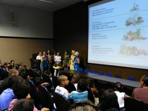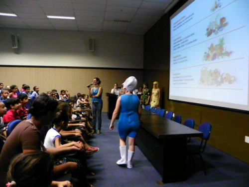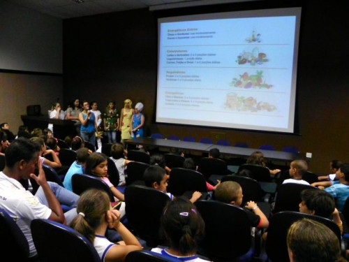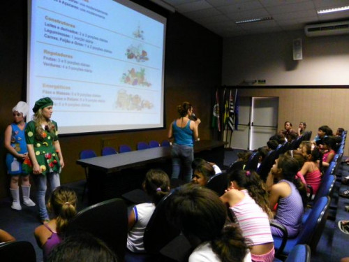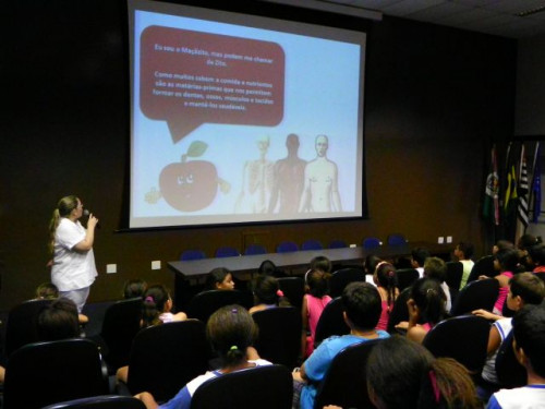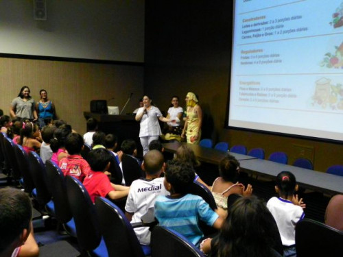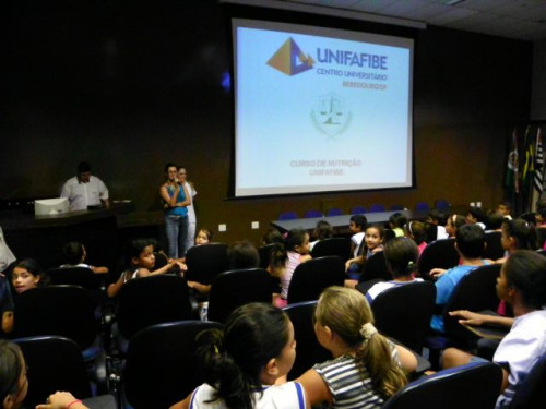Nesta tarde, os alunos da EMEB Prof. Octavio Guimaraes de Toledo, participaram de uma palestra ministrada pela coordenadora do curso de Nutrição, Profª. Drª. Rita de Cássia Garcia Pereira, juntamente com as docentes do curso.