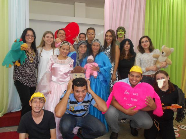 A riqueza do folclore brasileiro é passada de geração a geração. Pensando nisso, os alunos do Curso de Letras, orientados pela Profª. Mariângela Alonso, vivenciaram no espaço da brinquedoteca uma série de representações teatrais, contemplando diferentes textos: “Alvoroço de festa no céu” (lenda brasileira); releitura do mito de Narciso; brincadeira do copo e a loira do banheiro (lendas urbanas) e “Filho de gato é gatinho”(cordel de Patativa do Assaré). A atividade propiciou o resgate de lendas, mitos e costumes que narram a história do povo brasileiro.