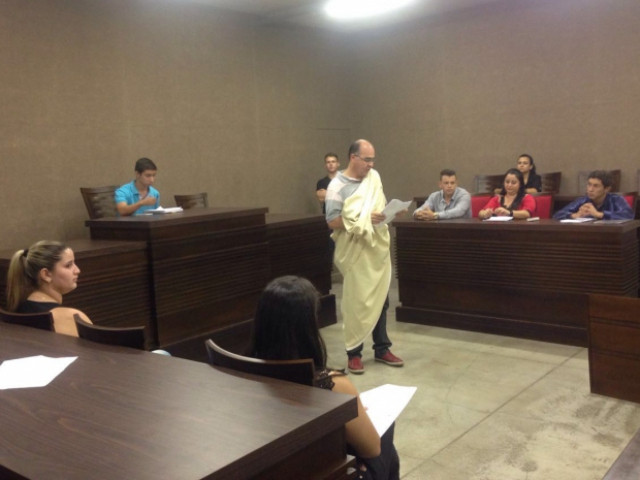 Os alunos do 1º A e 1º B do Curso Direito realizaram, no dia 15 de Abril, no Núcleo de Práticas Jurídicas, uma atividade intitulada "O Julgamento de Sócrates", relacionada à Disciplina de Humanidades, baseada em Metodologias Ativas.