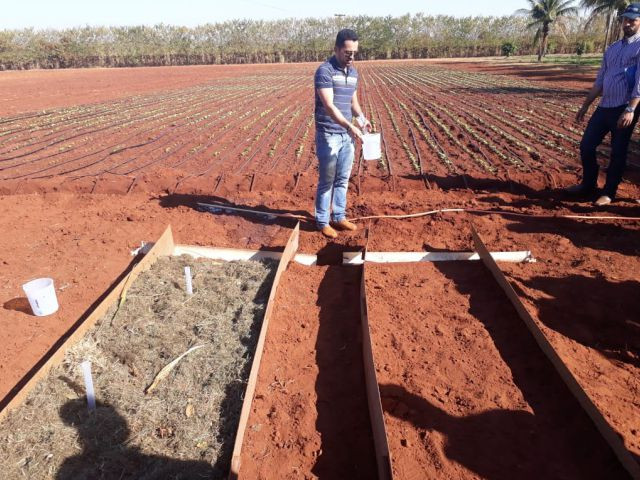 Complementando a aula, os alunos realizaram uma simulação de chuva artificial para perdas de água, solo e nutrientes em solo desprotegido.