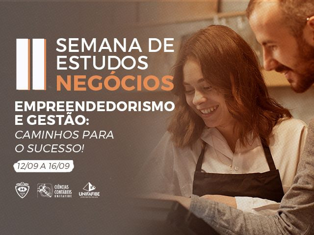 De 12 a 16 de setembro os cursos de Administração e Ciências Contábeis, do UNIFAFIBE, realizam sua II Semana de Negócios. E o tema desta edição vem de encontro a um assunto atual e de muita relevância – Empreendedorismo e Gestão: caminhos para o sucesso!