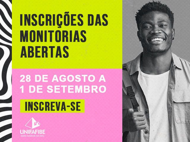 Estão abertas as inscrições para o Processo de Seleção de Monitoria nos Cursos de Graduação do Centro Universitário UNIFAFIBE.
