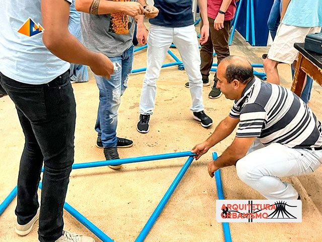 Os alunos do 4º período do curso de Arquitetura e Urbanismo realizaram atividade prática no Laboratório de Construção Civil para construção de uma estrutura geodésica no Componente Curricular de “Sistemas Estruturais”, sob responsabilidade do Prof. Fabio Braga da Fonseca.