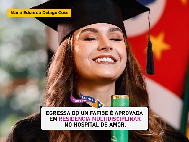 Maria Eduarda Delago Coss, recém-formada em Fisioterapia pelo Centro Universitário UNIFAFIBE, alcançou um feito admirável ao ser aprovada na Residência Multiprofissional do Hospital de Amor de Barretos. Sua trajetória acadêmica e determinação servem como inspiração para muitos. Isso reflete a excelência do ensino e suporte oferecidos pela nossa Instituição.