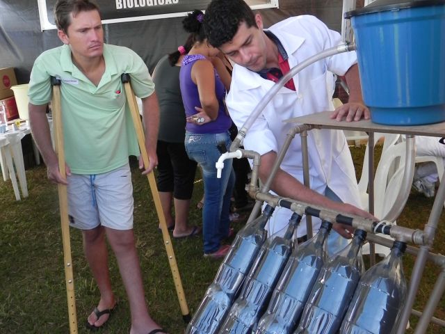 Apresentação dos parasitas presentes em água não tratada, medidas profiláticas contra parasitoses e apresentação do aquecedor de água feito com materiais reciclados.