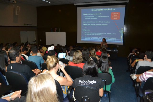 Nesta noite, os alunos do curso de Psicologia participaram do 1º Ciclo de capacitação acadêmica, que tem como finalidade orientar e conduzir os alunos do Curso de Psicologia às condutas e atitudes acadêmicas, com o intuito de conquistarem a autoconfiança e a segurança frente aos desafios, aos direitos e aos deveres enquanto universitários.