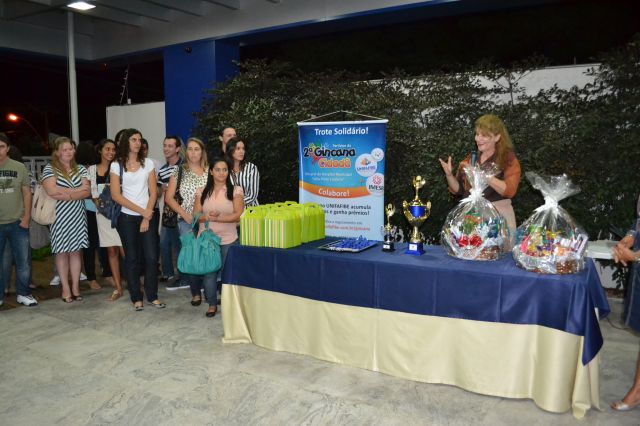 Nesta noite, no hall de entrada do Centro Universitário, foram destacados e premiados os alunos, a turma e o curso que alcançaram maior pontuação na Gincana Cidadã 2013, em prol do Hospital Municipal "Júlia Pinto Caldeira".