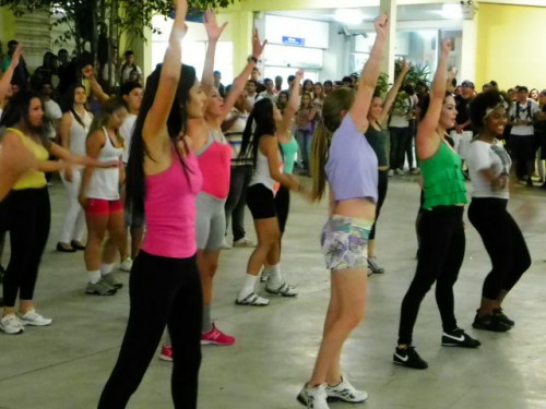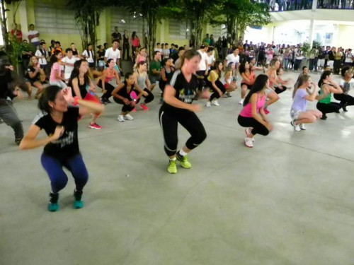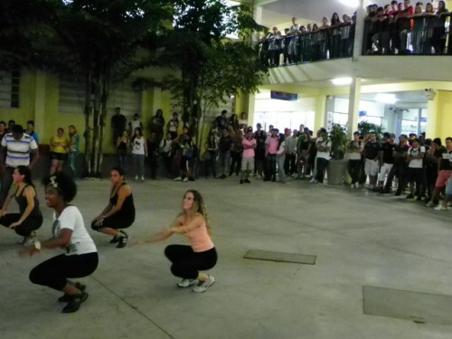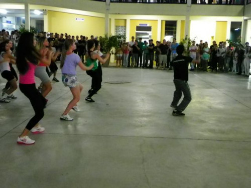 Os alunos dos cursos de Educação Física (Bacharelado/Licenciatura) realizaram apresentação de dança em comemoração ao Dia Mundial da Atividade Física, no pátio do UNIFAFIBE.