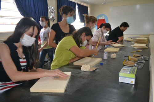 Neste sábado, os alunos do curso de Design Gráfico participaram de uma oficina de xilogravura realizada no Ateliê de Criação do UNIFAFIBE.
