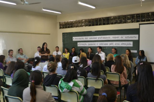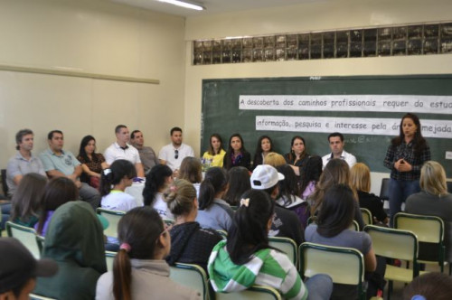 Os coordenadores de curso do UNIFAFIBE realizaram uma mesa redonda sobre profissões para os alunos do 3º ano do Ensino Médio da Escola "Dr. Antônio Augusto Reis Neves", em Olímpia.