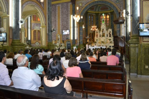 Formandos, professores, familiares e amigos participaram da Missa em Ação de Graças pelos formandos do curso de Enfermagem.