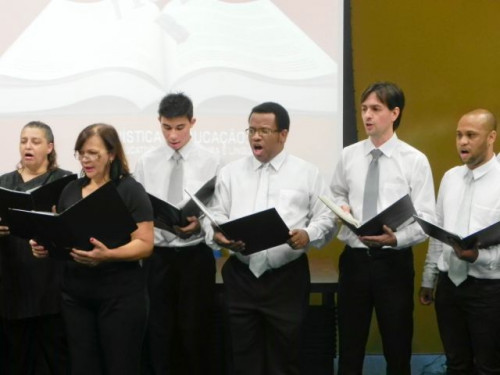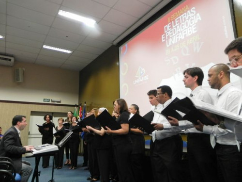 A II Semana de Letras e Pedagogia teve início com a apresentação do Coral Municipal de Bebedouro e com a conferência "A intolerância linguística na escola", ministrada pelo Prof. Dr. Juscelino Pernambuco.