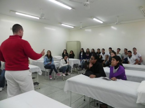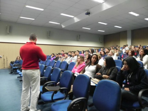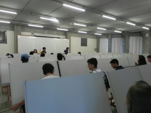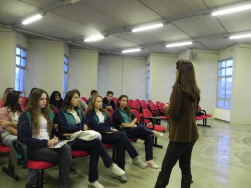 Os alunos do 3º ano do Ensino Médio do Colégio Anjo da Guarda e da Escola Abílio Alves Marques participaram de uma mesa redonda sobre profissões aqui no UNIFAFIBE.
