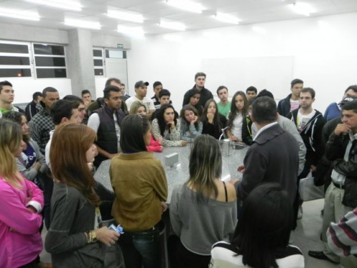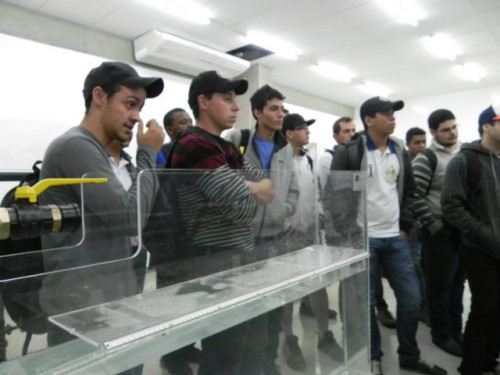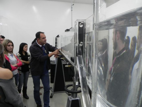 Os alunos da primeira turma do curso de Engenharia Civil, acompanhados pelo coordenador Hélio César Suleiman realizaram uma visita aos novos laboratórios de Hidráulica e Hidrologia, laboratório de Solos e Materiais e laboratório de Desenho.