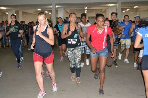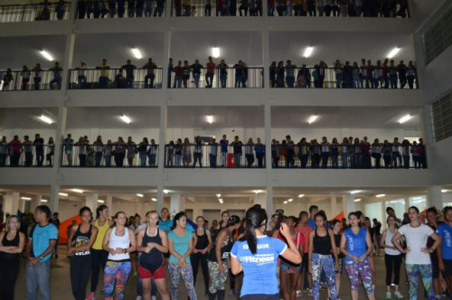 Os alunos comemoraram, no horário do intervalo, o Dia do Profissional de Educação Física, com uma apresentação de body mix.