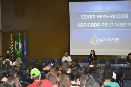 Os alunos do 3º ano do Ensino Médio das escolas Prof. Darcy Silveira Vaz, de Colina e Maria Falconi de Felício, de Pitangueiras, estiveram no UNIFAFIBE participando de uma mesa-redonda sobre profissões.