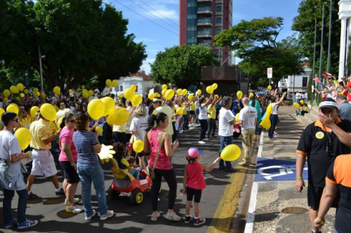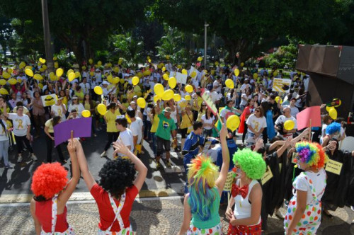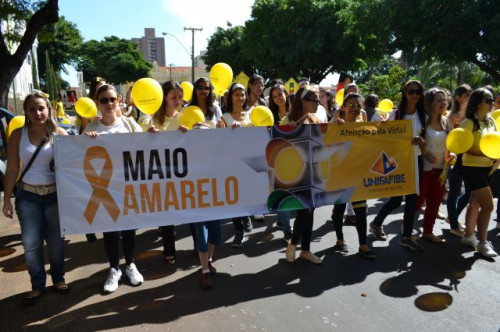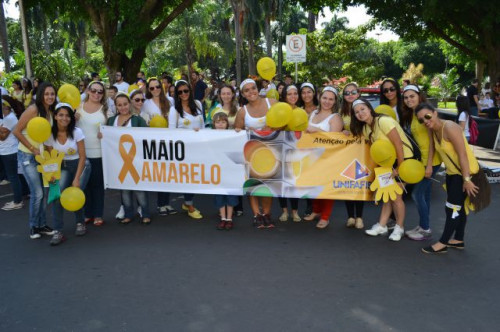 Os alunos dos cursos de Pedagogia e Fisioterapia participaram, nesta manhã, da caminhada da Campanha "Maio Amarelo".